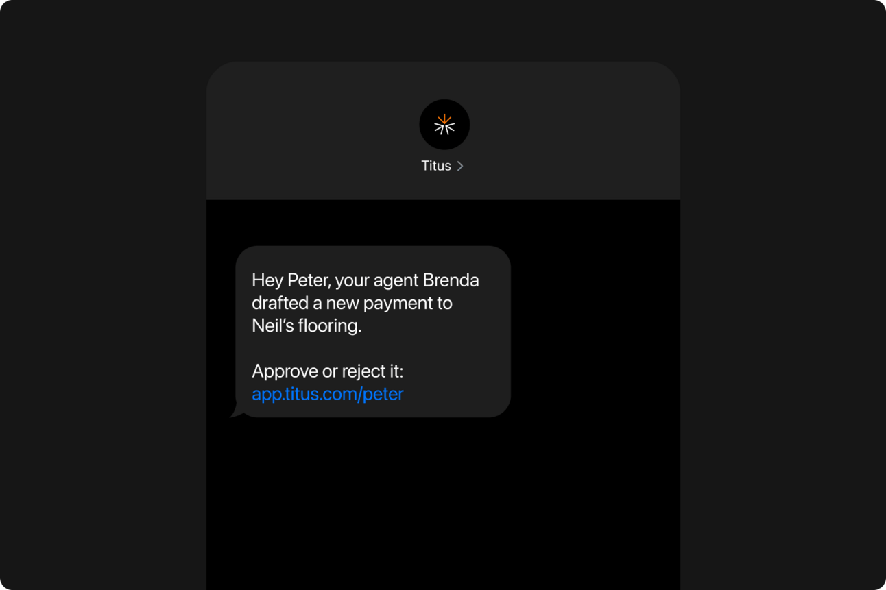 Once a draft payment is created, a text notification is sent to the client, prompting them to review the payment details.